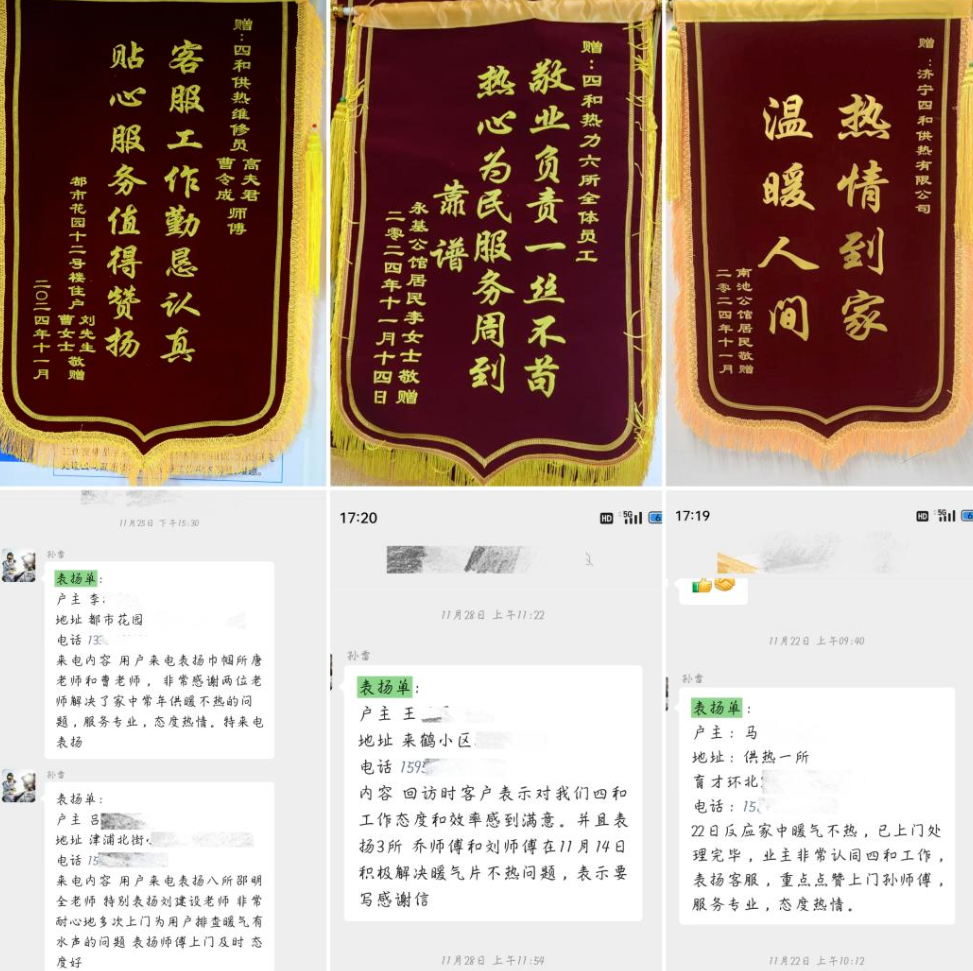 此次活动赢得热用户广泛赞誉,多个供热区域获赠锦旗和表扬,这不仅是对四和供热公司民生保障工作的充分肯定,更是对全体党员干部职工辛勤付出的有力见证,承载着广大用户对温暖冬日的殷切期望。下一步,济宁四和供热有限公司将继续秉持为民服务的初心,优化供暖质量,提升服务水平,常态化开展“访民问暖”工作,切实让冬日暖流常伴用户左右。